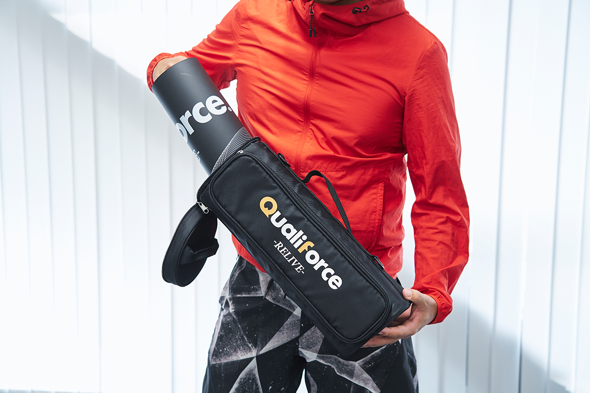 サイズ、重さともに持ち運びに困らず、またモバイルバッテリーがあれば、どこでも手軽に使用できるQFR。ご自宅はもちろん、ジムや試合会場、さらに出張先や旅行先などにも持っていけて、求める場所、求めるタイミングで手軽に使うことができます。