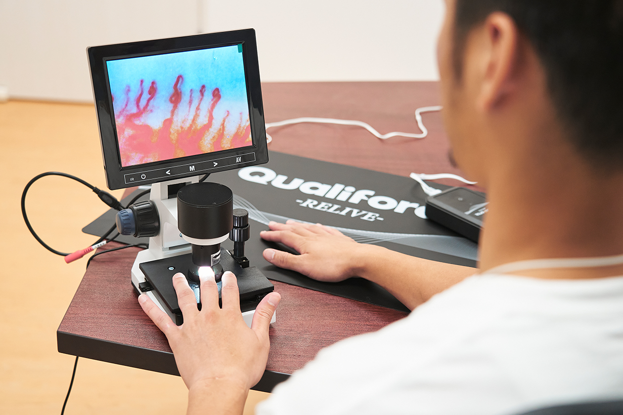 水に作用する独自の技術によって、血行を促進。「睡眠の質向上」と「疲労回復」を中心に、加齢からくる体調不良などに作用し、最高のパフォーマンスを追求するアスリートや、健康的な生活を求める現代人を、QFRが体の内側からサポートします。