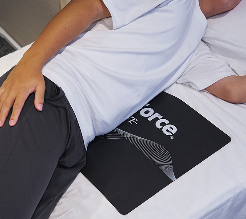 QFRの使い方は、体の気になる箇所に電極マットか電極パッドを当てるだけ。